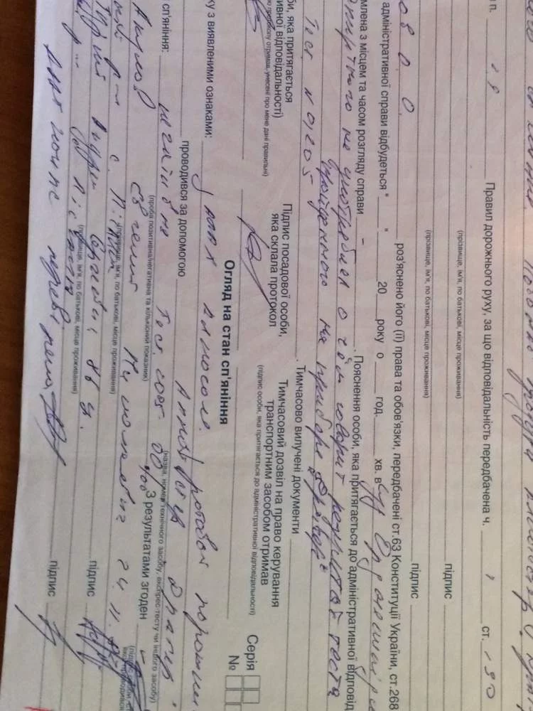 Судья внесла неправильный мой адрес прописки и собственно адрес моего фактического проживания, соответственно повестку в суд я неполучил, и рассмотрение произходило в мое отсутствие, к матерьялам дела инспектор приложил копию рапорта написанную им самим своему начальнику, в котором он четко изложил про орицательную продувку на приборе драгер, ну ожидая что я напишу про их произвольные действия их начальству, ну рапорт это ход конем со стороны инспектора, дабы избежать дисциплинарки, ну меня сейчас больше волнует тупая или слепая, безмозглая судья, или она человек который превысил свои должносные полномочия глядя на материалы и на показания в протоколе самого инспектора, смогла вынести такой приговор! Да и сам инспектор который отнес протокол и дал ход этому делу, соответственно вступив в заговор с самой судьей, чтобы хоть както мне насолить за мое знание конституционного права граждан Украины, столько много произошло в стране за последнее время, сколько полегло людей ради изменения у нас в стране к лучьшему, чтобы небыло такого посадового безпредела, и все получаеться зря, когда кучька низких посадовых особ, невоспринимают людей которые хоть както знают закон, и перечат беззаконию на дорогах, и пытаються хоть както наказать нас за наше уважение к закону, и его соблюдение!!!