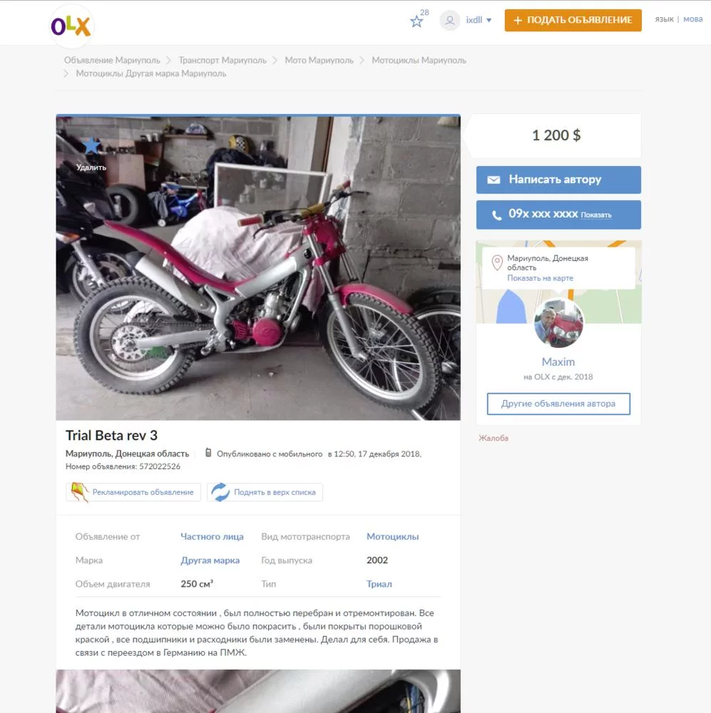 Продал дорожник 600куб бо скучно на асфальте, взял старый 250 2Т эндуро, тяжел - не понравился. Всё это время так же владею питбайком 200 кубов - вот он уматный. Маленький, лёгкий, юркий. Триал должен быть ещё интереснее, но их в Украине как кот наплакал. 5 шт на всю страну. 3 из них в Киеве, по одному в Полтаве и Львове.