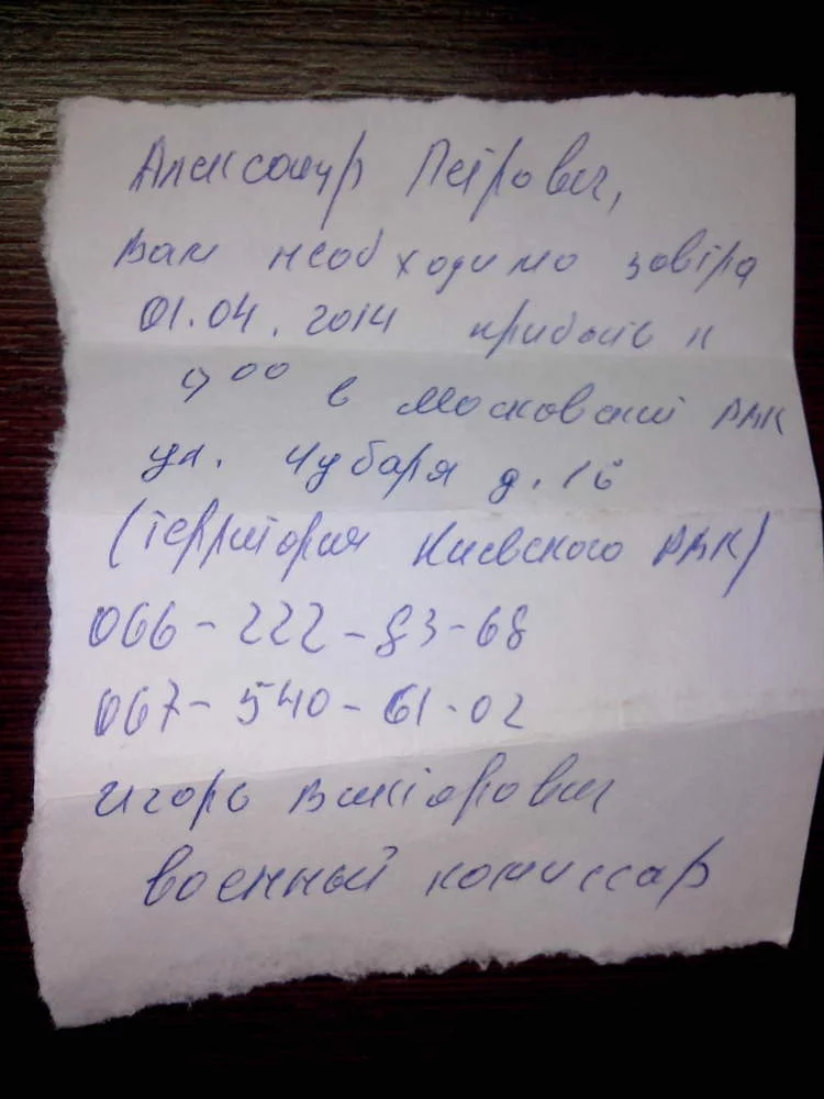 Вот такую вот "повестку", засунутую в дверь, получил.