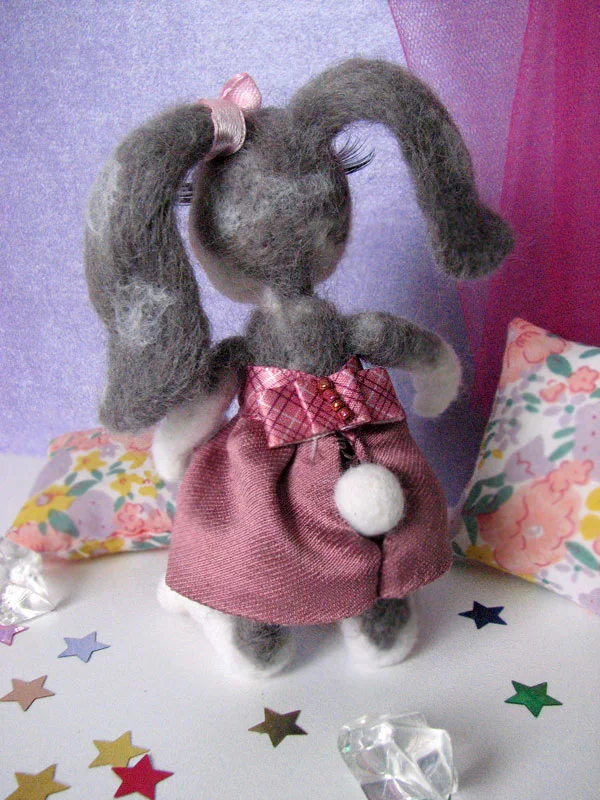 Столько быстро сменяющихся эмоций вызвало твое творение. Вначале я подумала, что он-то как раз в таппок и нагадил, а его застукали и он лапы вверх поднял, а стоит на подставочке. Потом при ближайшем рассмотрении поняла, что это ушки. Ну а когда ты его развернула... - Боже, как трогательно обработаны детали