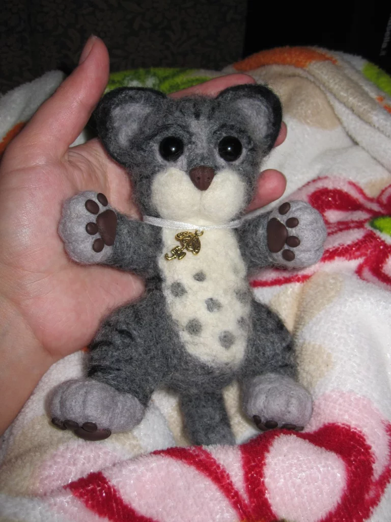 реальные у меня не получаются при всем желании...Мне котишка нравится. Он такой... игрушечный! Мне кажется, все пытаются повторить реальных зверушек, а у тебя именно игрушки получаются.