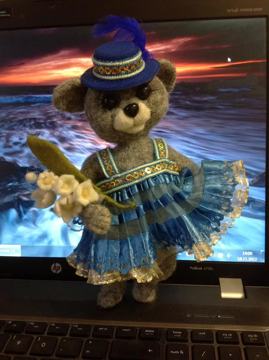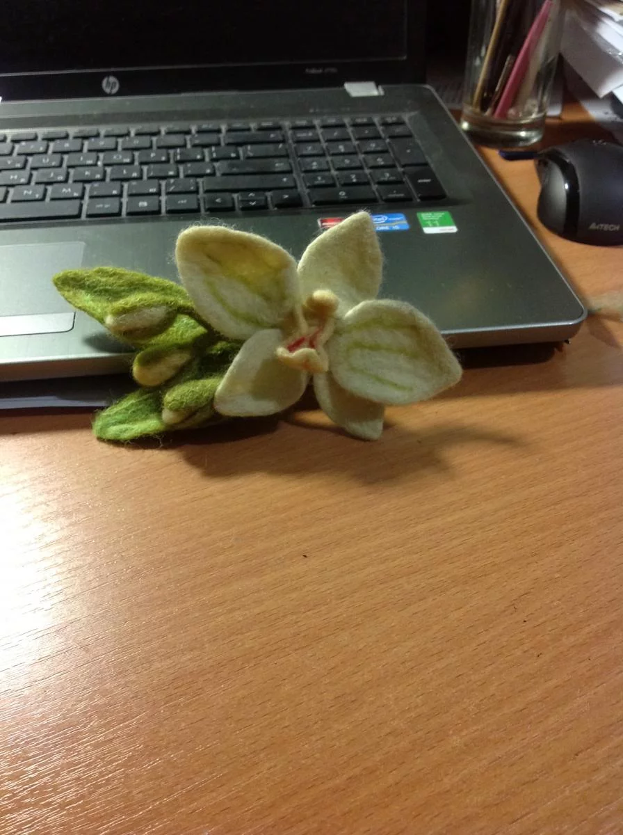Моя первая сваляная мышка-кокетка Мауси(рост 19см), первая орхидейка(мокрое валяние на каркасе) и валеночки на елку(их еще украшу)