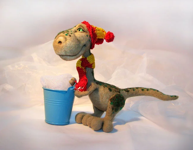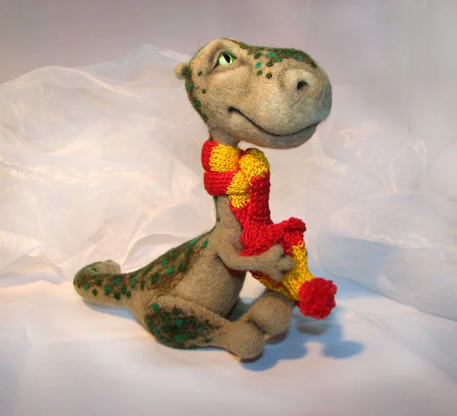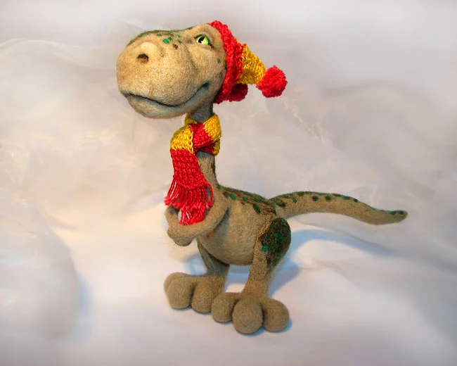 Дино. Рост 17 см. Ножки подвижные - сидит, стоит. Шапка и шарфик снимаются.