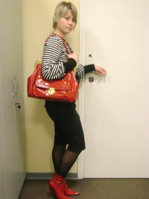 не знаю, было или нет, но я ещё не люблю, когда одевают ярко-красную обувь (сапоги/ботинки) и в цвет обуви ярко-красная сумка. терпеть такого не могу. а если это всё дешёво-клеёнчатое, то вообще ужас. что-то вроде этого