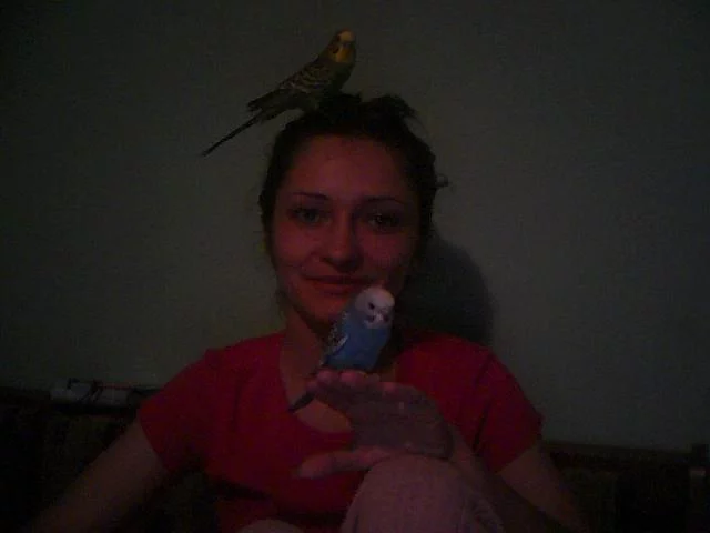 не могу не отметить про свою парочку! Девочка очень тихая и везде летает с Прошей! Он ее один раз покормил, так она теперь клянчит )) Такие звуки при этом издает - смешные!! Пробует все на вкус! Очень отличается от Проши характером. Уже уверенно летает по комнате. Мы ее сначала назвали Мира, а потом решили Синичка. Хоть и не желтая, но СИНяя)). Это все от ее интересных рассказов - звуков...