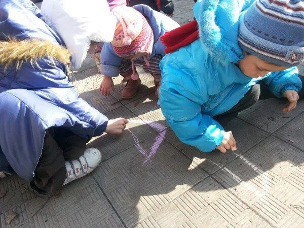 Спасибо огромное Жене за мелки - сегодня детишки использовали их по полной. Взамен за красивые рисунки крохи получили шоколадные конфеты.