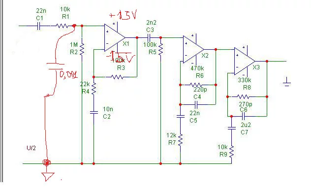 нижняя шина это половина питания - центр делителя то бишь.думал,если напишу U/2 там,то будет понятно.