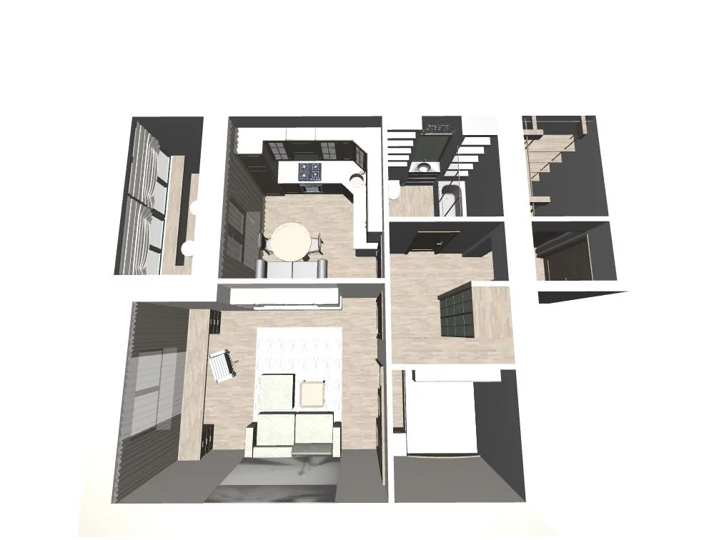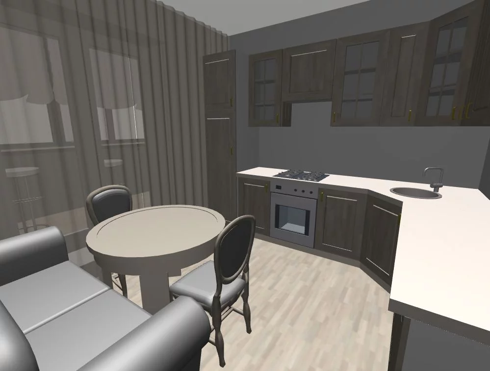 Эскизных вариантов делаю 2-3, все в обьеме, при встече показываю на компьбтере, то есть мы можем виртуально походить по вашей будущей квартире. Потать что как и где стоит, габариты итд итп.
