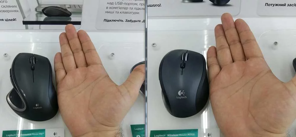 2. Для большой руки, что то типа Logitech Perfomance MX/Rapoo 7800p. Ибо та же Logitech M705 ну очень маленькая (см картинку для сравнения)