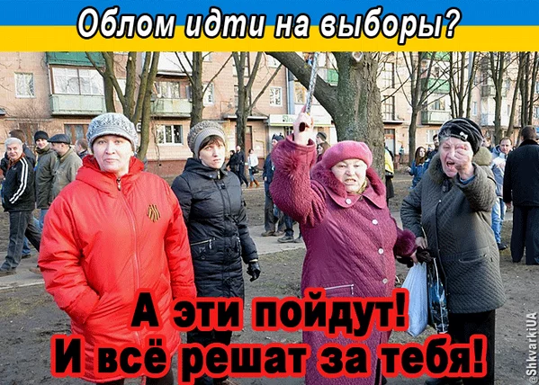 Ну шо, только с избирательного участка. В списках только от силы третья часть получивших бюллетени. Запоздавшие бабки на костылях ещё тянутся в сторону участка.
