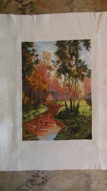 Картина "Осенний пейзаж 2". Размер 14Х20 см. Нитки - мулине.