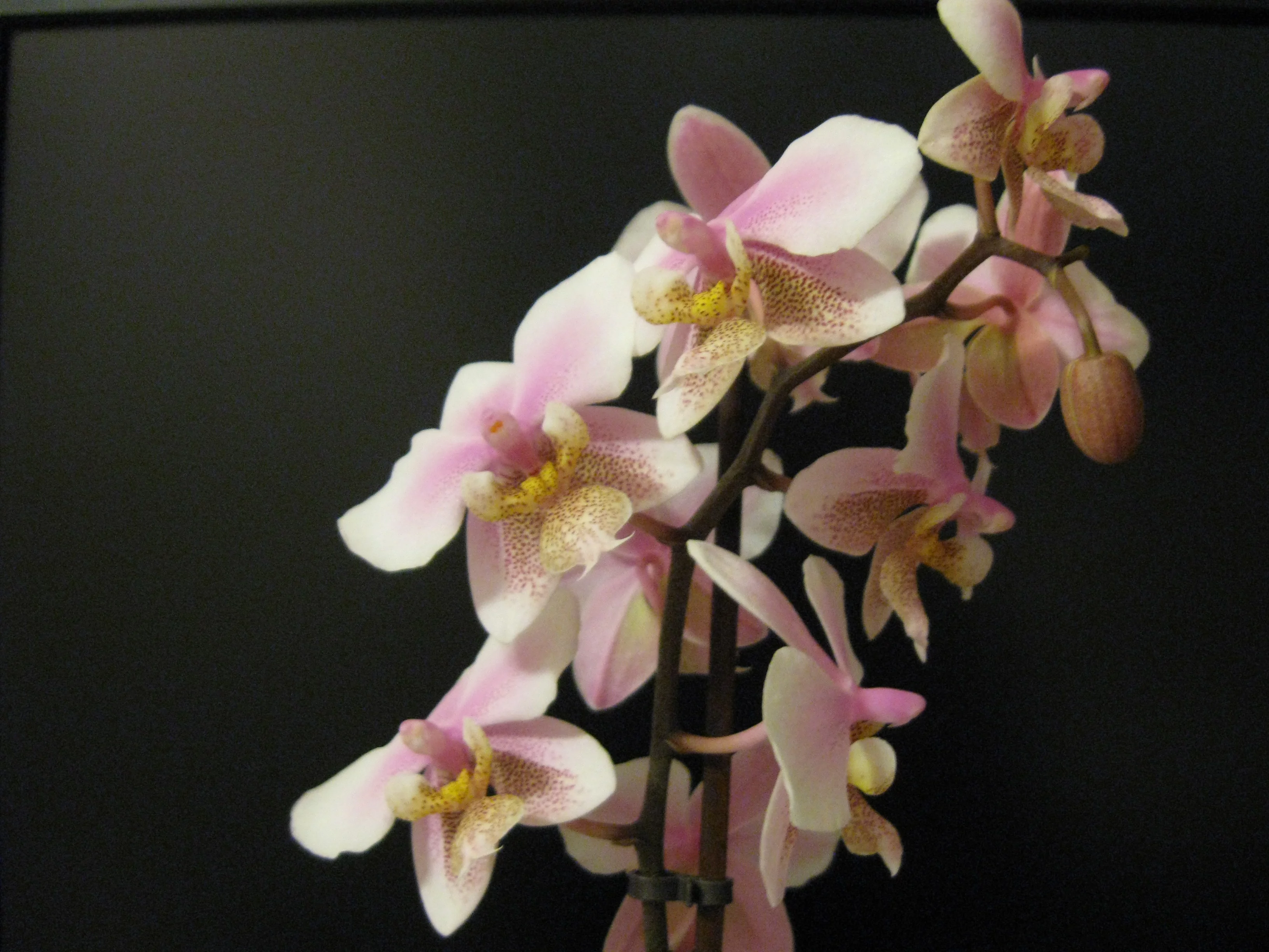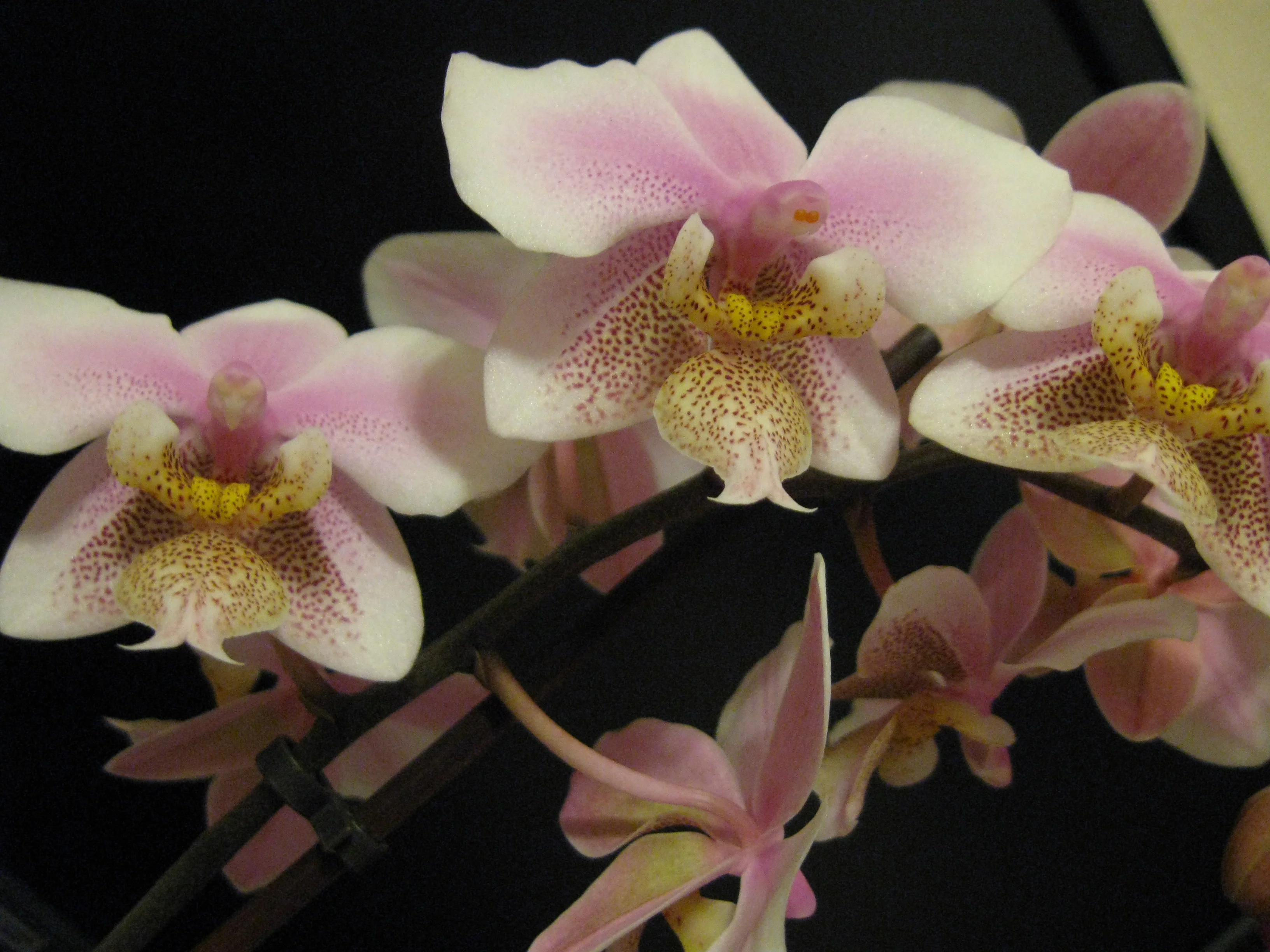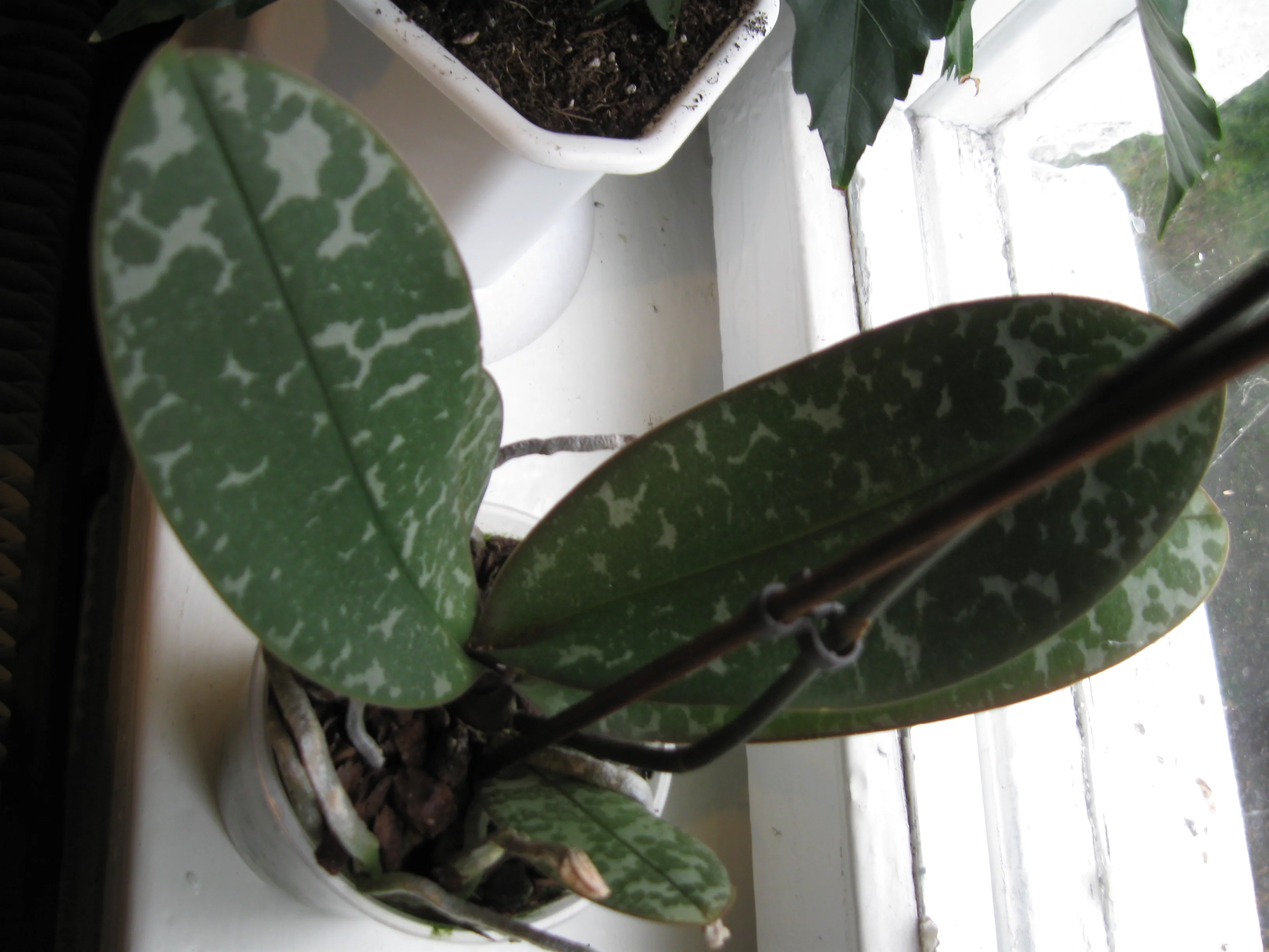 Не могла пройти мимо орх :love:- купила суперскую камбрию (цвета черного бархата) и чудный мини фалик с пятнистыми листьями.