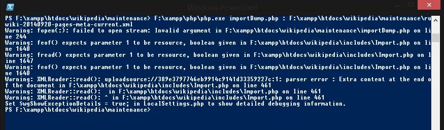 F:\xampp\php\php.exe importDump.php : F:\xampp\ruwiki-data-pages-meta-current.xml