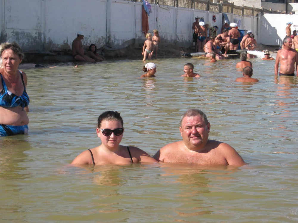 мертвое соленое озеро на Арабатке, где сам всплываешь наверх, приятно купаться когда на море дождь и шторм, через дорогу находится горячий источник с трубой, за вторым мостом от Геническа находится глубокая промоина Ласточка где я в 11лет чуть не утонул.Нужна фотка будки. Или деда. Может, и сорвётся....))))