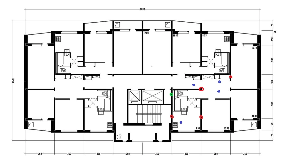 16ти этажка такая же как у автора. В двухкомнатной решил поставить канальный вентилятор прямо в воздуховод вытяжки. Вытяжка из ванной уходит вверх. Проход в канал -щель сантиметров 10 на 2. Начал расширять до отверстия 10 сантиметров в диаметре. Сразу куча арматуры, есть довольно толстая. Теперь думаю, несущая это стена или нет. Можно арматуру перерубить? Вроде это не кабинки стенка, а следующая за ней. Стенка на картинке между розовой ванной и зелёной большой комнатой.