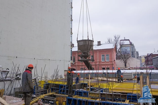 Стадия: по состоянию на 02.12.2015 выполнено бетонирование фундаментной плиты. В процессе непрерывной заливки было использовано 480 кубометров бетона. Забетонированы колонны и наружные монолитные стены подвала. Залита бетоном первая часть перекрытия над подвальным этажом.