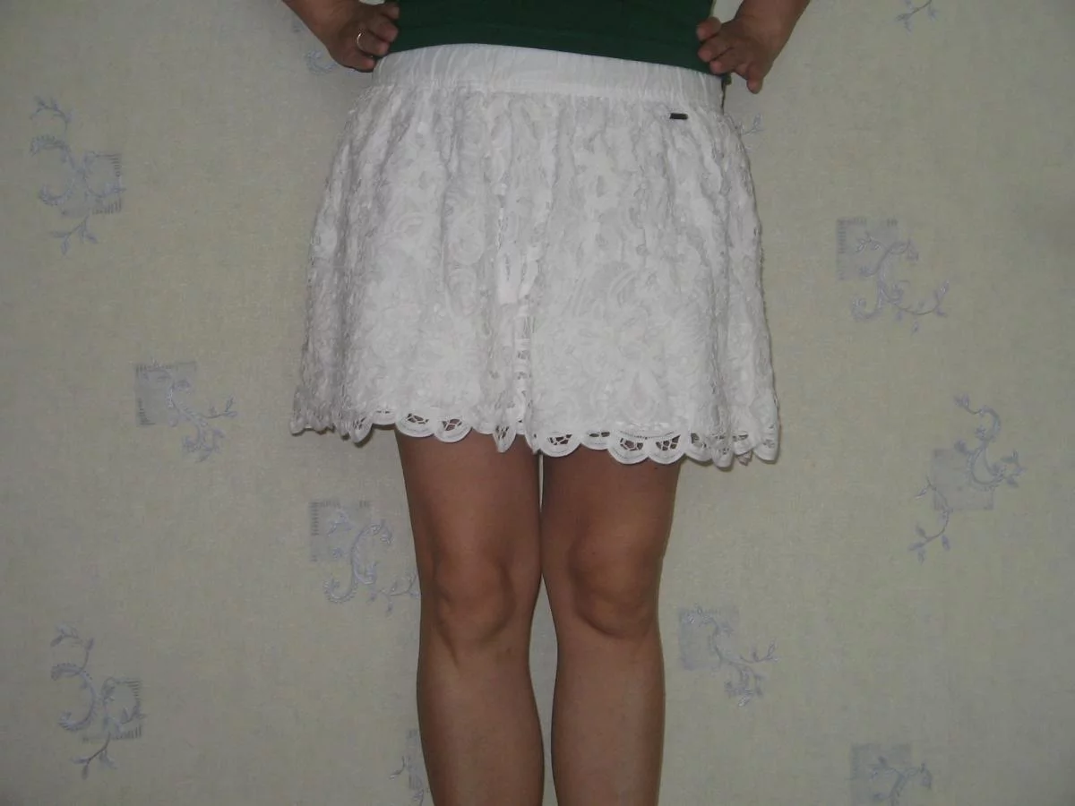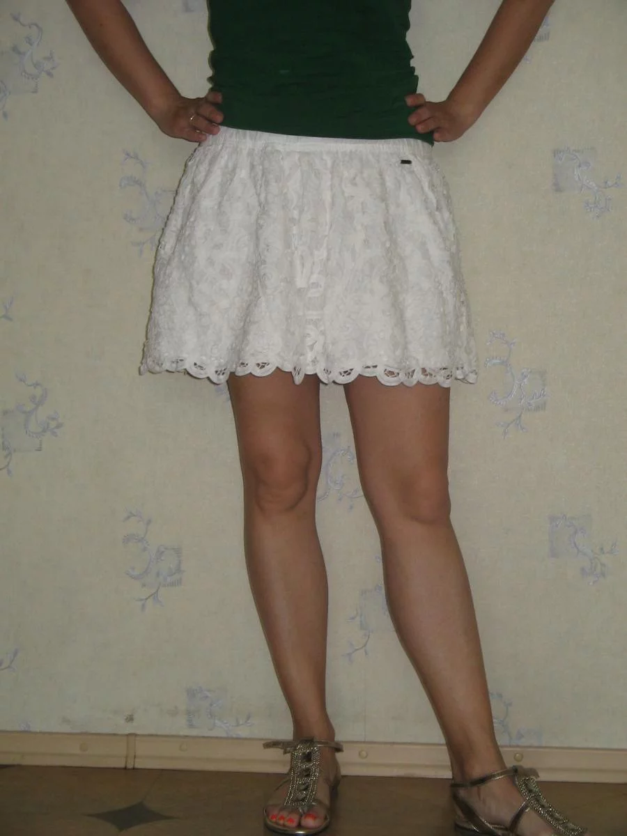 Юбка супер ! Почему коротковата ? У меня практически такая же, но Аберкромби (ясно, та же контора) - ношу постоянно с белой майкой, цветными сандалиями и ярким маникюром, конечно же ;)