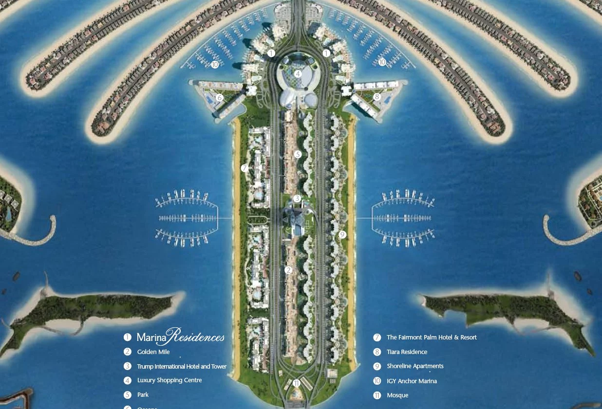 Пальма Джумейра (The Palm, Jumeirah) и могут быть любого размера - от двухкомнатных (с одной спальней) до пентхаусов.