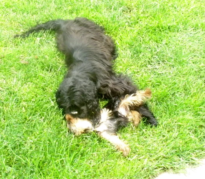 Хорошо на травке.Счастье для собакевичей.А кто с йориками был на море?