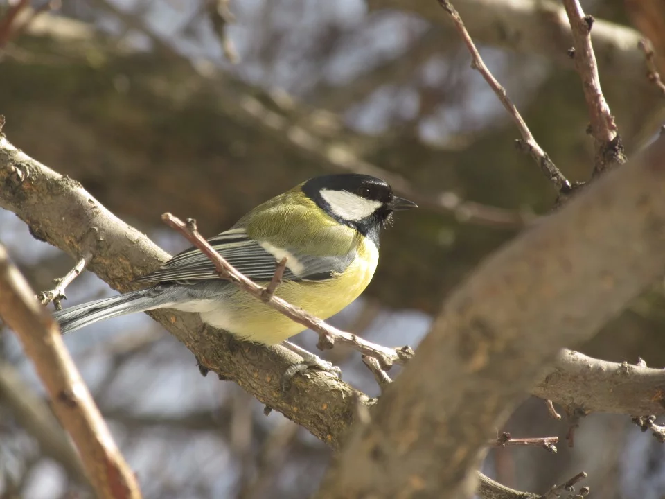 А сегодня заметает! И маленькие птички по сугробам на деревьях пробираются к кормушке