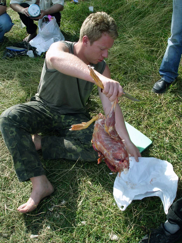 а на остальных - пострадавшая коленка Сэнди, Рыжий за разделкой дичи. ну и снимок с высоты полета отлетающей души гусыни...