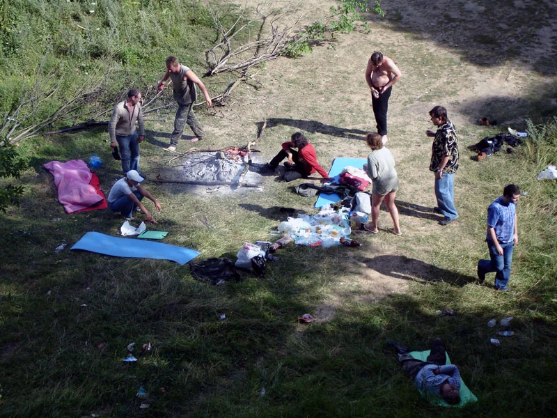 сравните первые две фоты - утром девчонки довольные, а пацаны как-то выглядят утомленными :-)