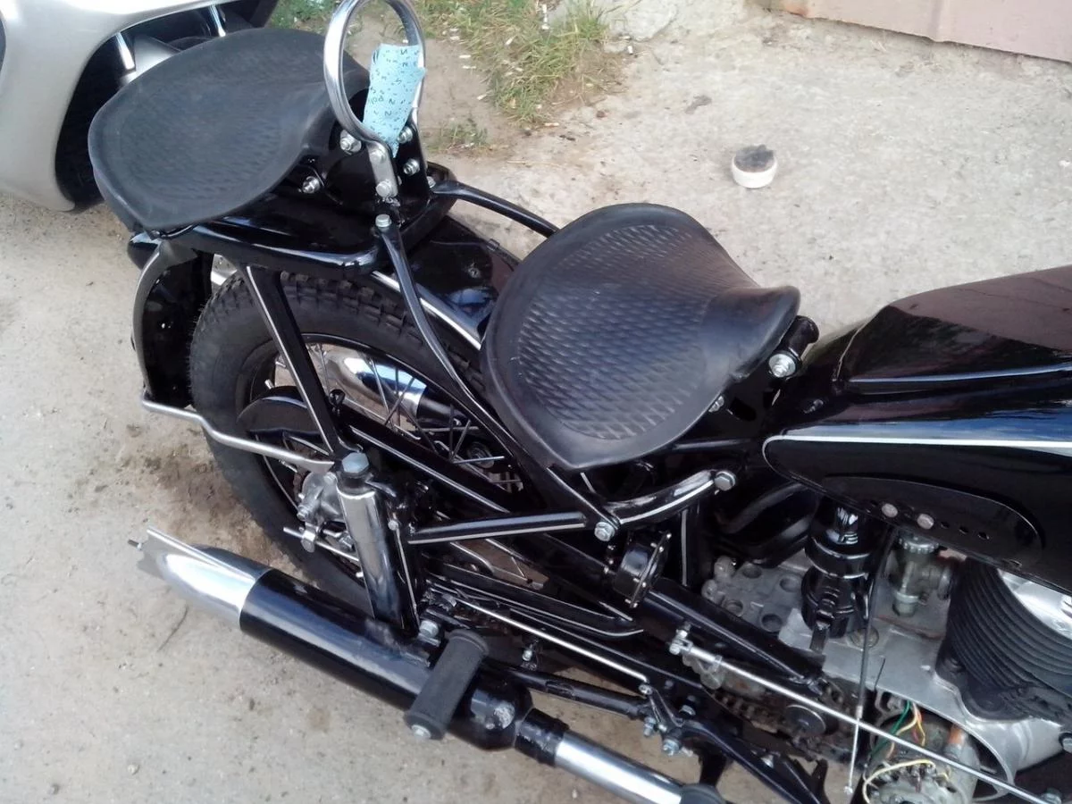 что есть то есть:пиво:это планета спорт была)) естевственно удлиннял;) на 50мм маятник, в него 6ть сипораторов с пальцами и пыльниками с трансальпа поставил,ось маятника 12мм выбросил, изготовил 15 мм немного в хвостовой части раму изменил(замкнул ее за амортами ибо хромонсиль хромонсилем но распорочка на стойках(тоже солянка с чезовским верхом и ижовским низом) не помешает) бак с ямахи XS спэшл, сиденье сам воял, заднее крыло до неузноваемости запилянное с 56го, переднее с 4й серии ижей, колесо с 19" переспицевал днепрячими спицами под 18" явовский обод со стоячей спицовкой, фара и руль с понки, бардаки подреза чтоб в плотную к раме были, электрику с макаки втулил 14в без контактник(чтоб акум выкинуть-неприемлю я этот узел на мотах с киком)... с весом боролся одним словом, эндуро лепить из дремучего мота-не тру, а вот скрэмблер совсем другая эпоха стилей! но был замечен в укАлхоживании и 2х котлового чучела пару месяцев назад... приятель оставил мот на пару дней, а 49й которого реставрировал был не шибко комплектен для сборки(шпилек кребежа жопной части рамы были на гольванике), так я его юпака от скуки попилил))) :yahoo: типа кафэндрик:D но такого бокового упора я ранее не видел)))))))