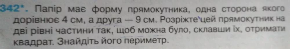 Me1 Статус: Офлайн Реєстрація: 09.02.2008 Повідом.: 5811 09.10.2017 #2 4*9=36 36=6^2 периметр 24, резать буквой гэ так чтоб из 9 сделать 6 и 6, потом повернуть.