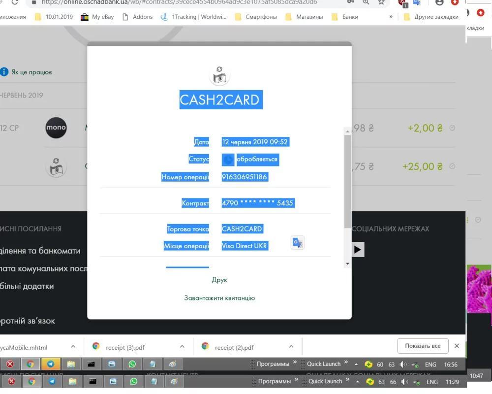 (просто оставлю это здесь, телефонные переговоры, как я этим тупым, непрофессиональным *****асам хамил, будут предъвлены по суду, в их версии, в моей - результат. Поступившие на карту деньги уже через 5 минут, были оприходованы банком и разнесены по счетам разных балансов - списана комиссия, списана задолженность по картсчёту, и остаток был заведён на карту клиента. и всё это - ясно отображалось на интерфейсе!!!) - отмечу : никакой валютовки, никакого банковского дня! Оба банка "ГОСУДАРСТВЕННЫЕ"(хоть один и спизженный), валюта - гривна, начало операции - утро рабочего банковского дня...