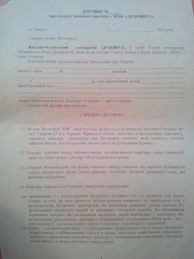 Сталкивался с данным застройщиком в Черкассах. Скан договора в приложениях.А кто то сравнивал договора, который был в Хмельницком с другими? интересует наличие там пункта про подключение городских ком. . И пункт, дословно уже не помню, но звучит как то так: "обязуемся все построить и подключить , если не будут мешать местные городские власти, иначе мы не виноваты"