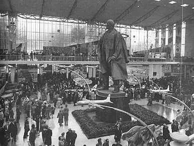 В 1950-х у Советского Союза сложился интересный имидж - страны, сломавшей хребет нацизму, живущей в оковах. У СССР были свои адепты, читатели журналов «Советский Союз» и Soviet Life, но они не доминировали в мире. Да и приверженцами они были прошлого, сталинского. И понимание необходимости сломить этот образ, очеловечить "первое государство рабочих и крестьян" нашло своё отражение в главном "мирном оружии" всех стран - пропаганде. А что лучше всего для этого годится - спорт, культура и наука. Возврат отечественных ученых к открытым дискуссиям, участие в крупнейших мировых спортивных состязаниях, гастроли артистов балета и ... выставки. СССР, ещё с 20-х годов принимал участие в международных выставках, и каждая такая выставка была значимой и успешной. Сколько «копий сломано» историками при обсуждении выставок в Париже, Нью-Йорке. Здания - монументы, труд сотен архитекторов, художников, скульпторов, инженеров. Всё величественно, пафосно. Но в 50-е годы одним величием уже нельзя привлечь сердца людей. И тут, неслыханная удача - достижения советской науки - первый спутник, атомоход «Ленин», Ту-114. Реально яркие «визитные карточки», да ещё и мирные (понятное дело, что за этими «мирными советскими тракторами» скрывалось, но это было).