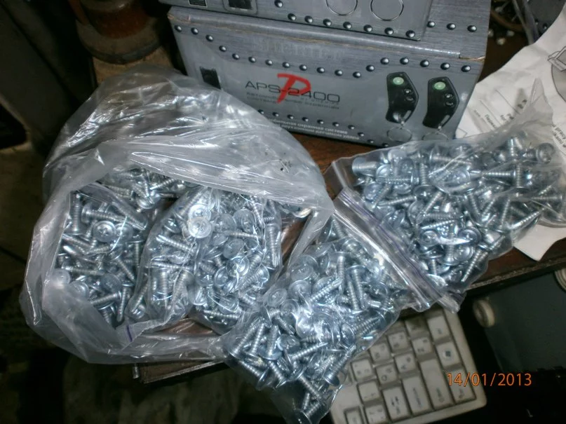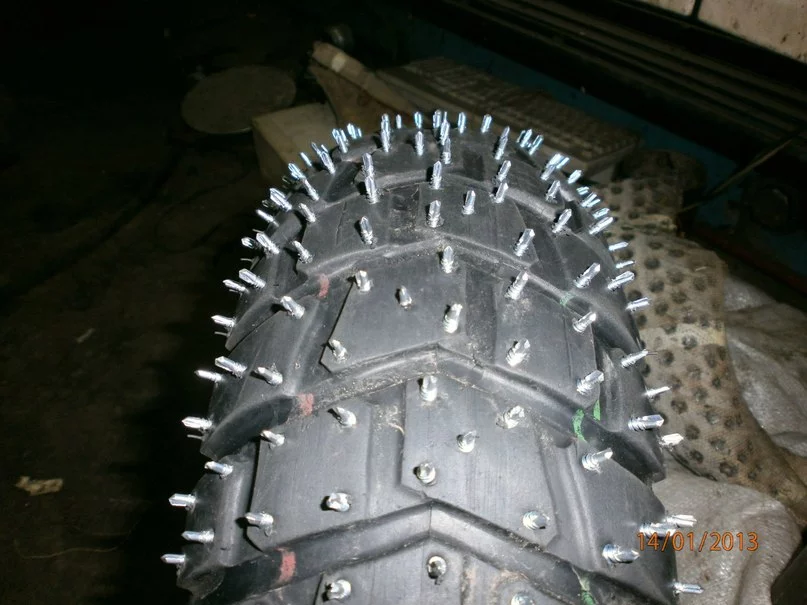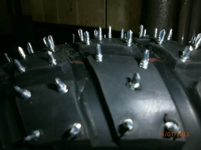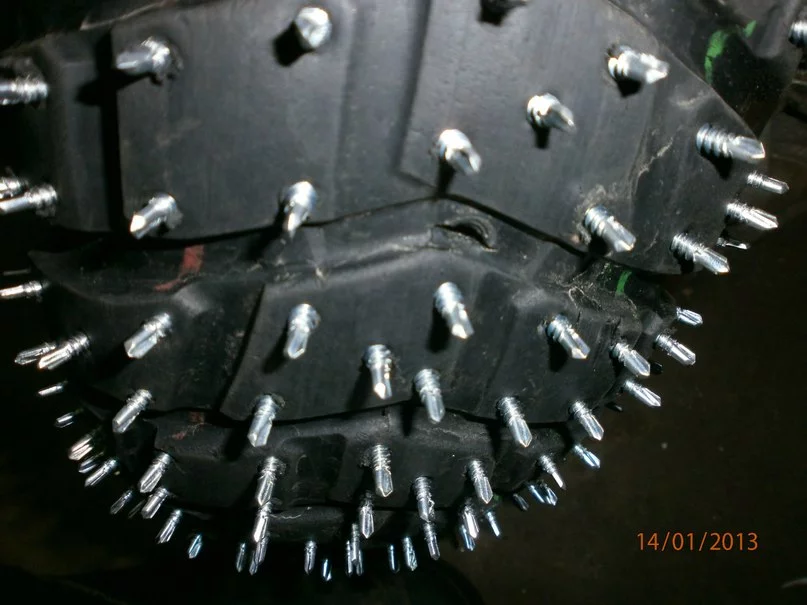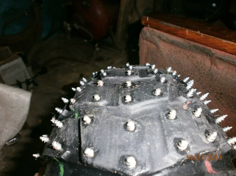 А я заднее колесо розобрал:rolleyes: Меняю острые шурупы на те шо со свердлом.:yahoo: Послредине почти стер старые,плохо снег розгребать стал.